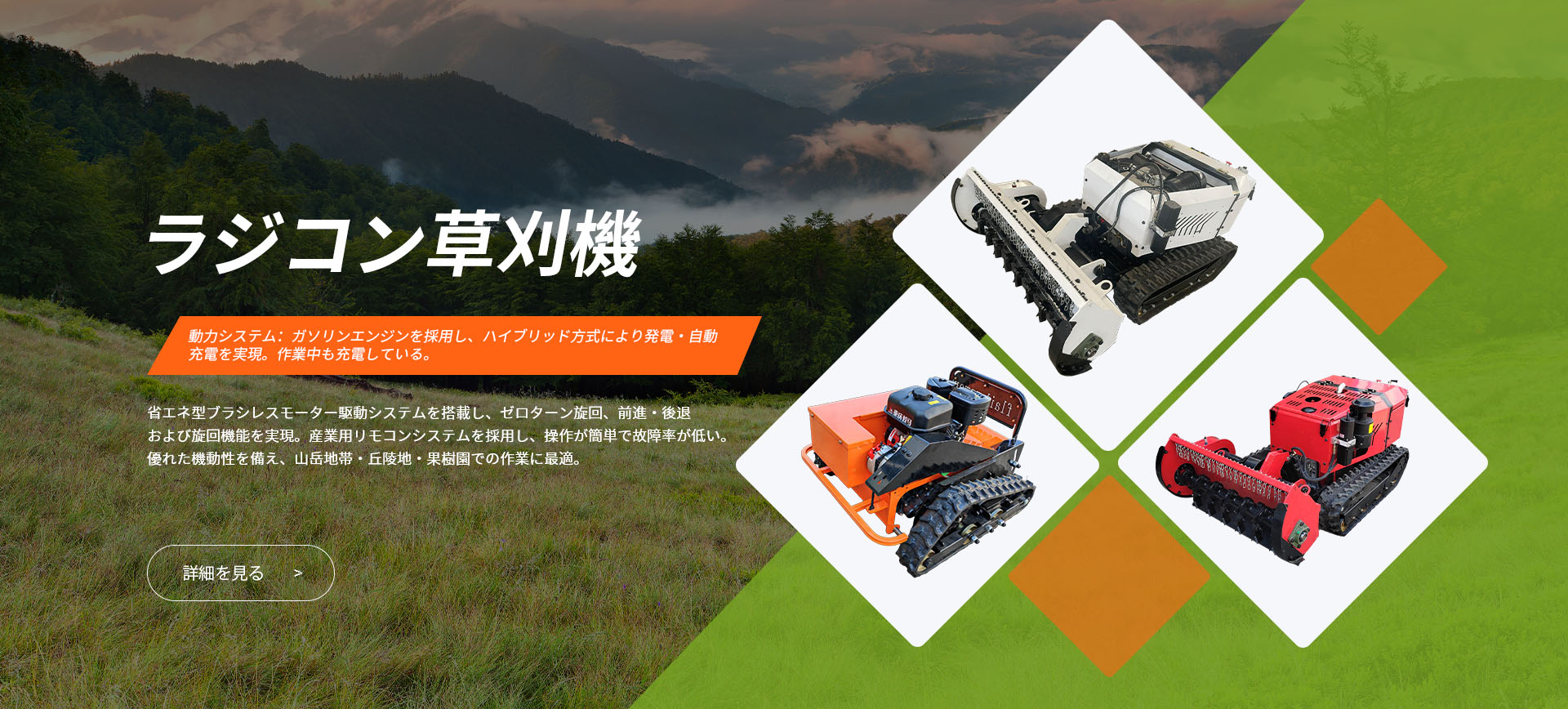ラジコン・GPSスマート園芸機械の専門メーカー。専門的な研究開発チームを有し、レーザー加工、ロボット溶接などの先進的な生産設備を完備。